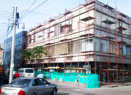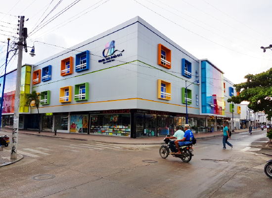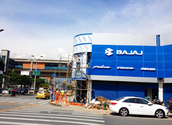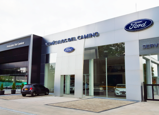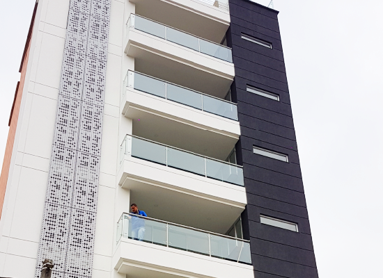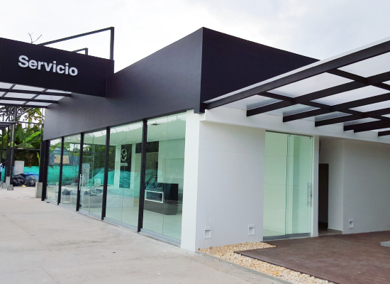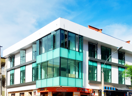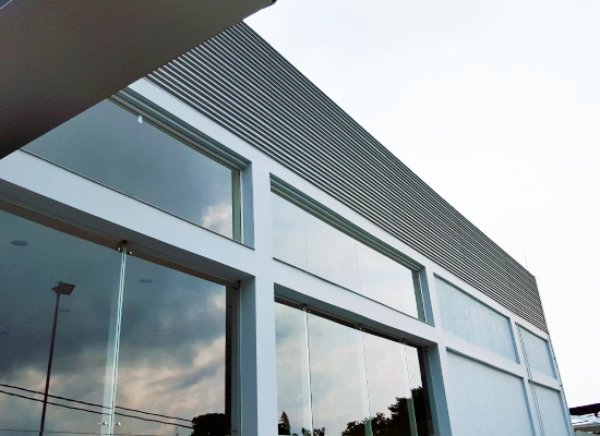 Fachada en vidrio templado y panel compuesto