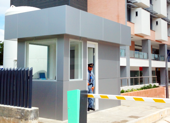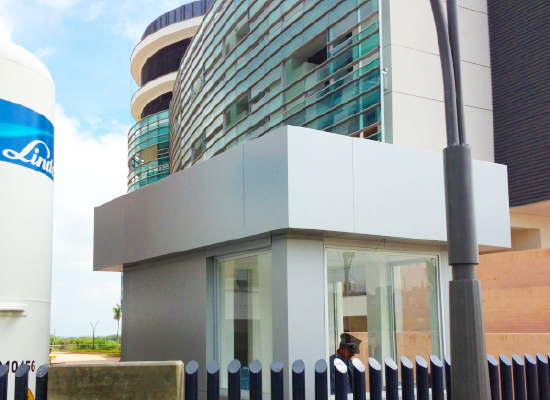 Taquilla en panel compuesto y ventanería fija
